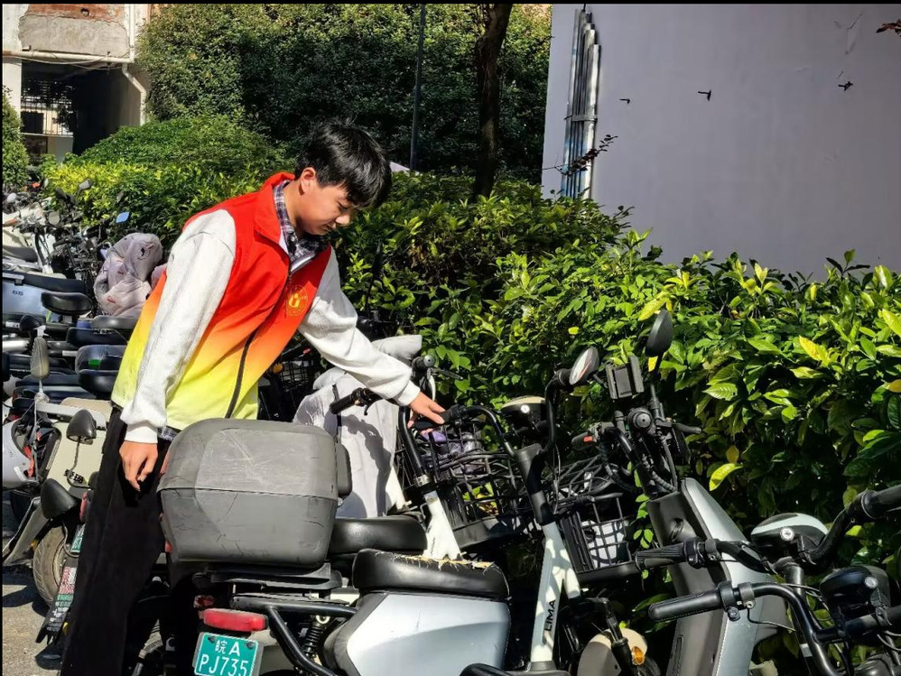 每日晨光熹微,志愿者们便已在一期校园和香怡宿舍各停车区域整装就位,分工协作开展志愿服务:“归位”行动中,他们细心将倾斜、越线的车辆一一调整至指定区域,让每一辆车都“各安其位”。