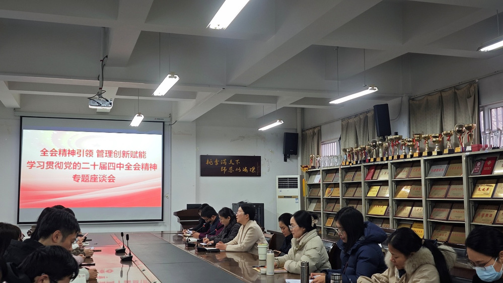 为深入学习贯彻党的二十届四中全会精神,管理学院党委书记刘金平深入师生一线,于12月23日在管理学院二楼会议室与物流教工党支部、物流和供应链学生党支部开展主题为“全会精神引领管理创新赋能——学习贯彻党的二十届四中全会精神”的专题座谈会,会议由管理学院党委副书记徐娴主持,物流教工党支部、物流与供应链管理学生党支部全体党员参会。