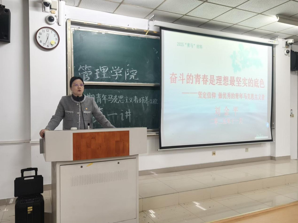 为着力培养信仰坚定、能力突出、勇于担当的新时代青年马克思主义者,11月17日下午,管理学院“青年马克思主义者培养工程”培训班邀请管理学院党委书记刘金平教授,以“奋斗的青春是理想最坚实的底色,坚定信仰做优秀的青年马克思主义者”为题作首场专题讲座。