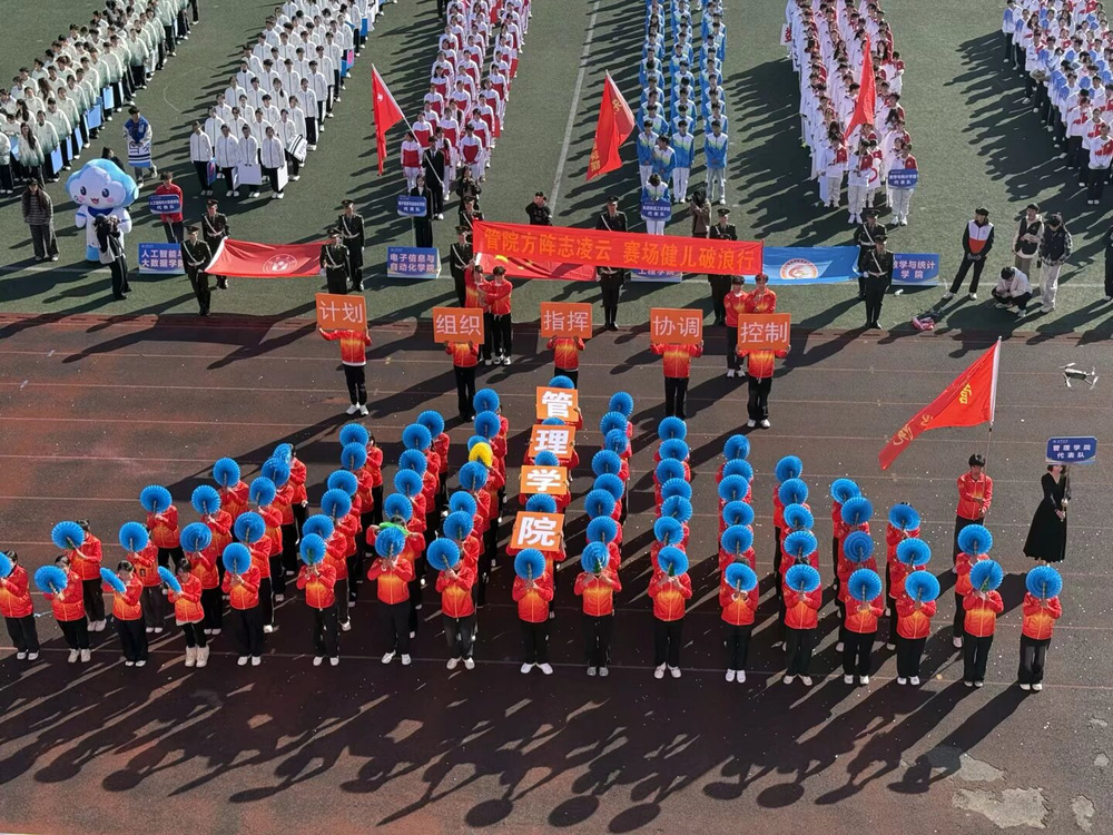 10月23日至24日,合肥大学第二届田径运动会暨第二届教职工趣味运动会在田径场热烈开赛。全校师生齐聚一堂,共赴这场速度与力量的盛宴。 运动会前,管理学院积极组织筹备,广泛宣传动员。同学们踊跃报名,共40余名运动员参与各项比赛项目角逐。 开幕式上,管理学院方阵队形“由塔到面”的折叠与铺展,将管理学百年思潮凝练成行进间的“移动课堂”。足音铿锵,是管院人务实笃行的鼓点,横幅高扬,是新一代驭风逐梦的画卷。他们以方阵为纸、青春作笔,在跑道上诠释管理的严谨,在阳光下点燃奋斗的激情!