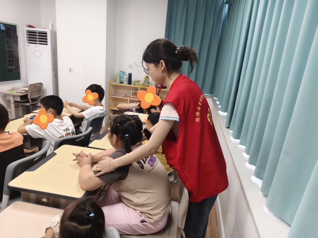 在园长的周密安排下,志愿者们两人一组深入不同班级协助教学。生活自理课上,老师耐心教导孩子们认识芹菜、学习叠裤子,志愿者们在旁贴心辅助。而在动手能力课程环节,孩子们收到不织布卡片,在志愿者的悉心帮助下,将小鱼串好并整齐摆放,期待老师检验成果。整个过程中,志愿者们始终耐心引导,孩子们也踊跃参与,现场洋溢着温馨和谐的氛围。