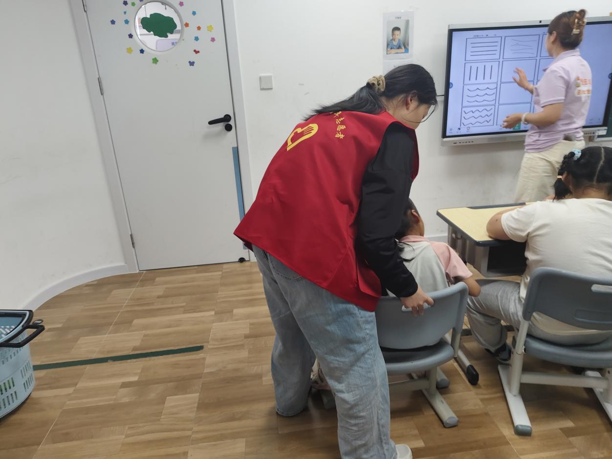 在园长的精心安排下,志愿者们有序分组进班协助教学。生活自理课上,老师细致地示范叠衣服并将衣物整齐收纳进书包,随后鼓励小朋友们上台亲身体验。专注力训练课上,志愿者们默契配合教师,发放色彩斑斓的不织布玩具,引导小朋友将玩具穿入洞洞,锻炼手眼协调能力。在欢快的氛围中,小朋友们的专注力得到了有效提升。体育课环节,志愿者们与小朋友们围坐在一起,伴随着轻柔的音乐,共同进行手指操练习。