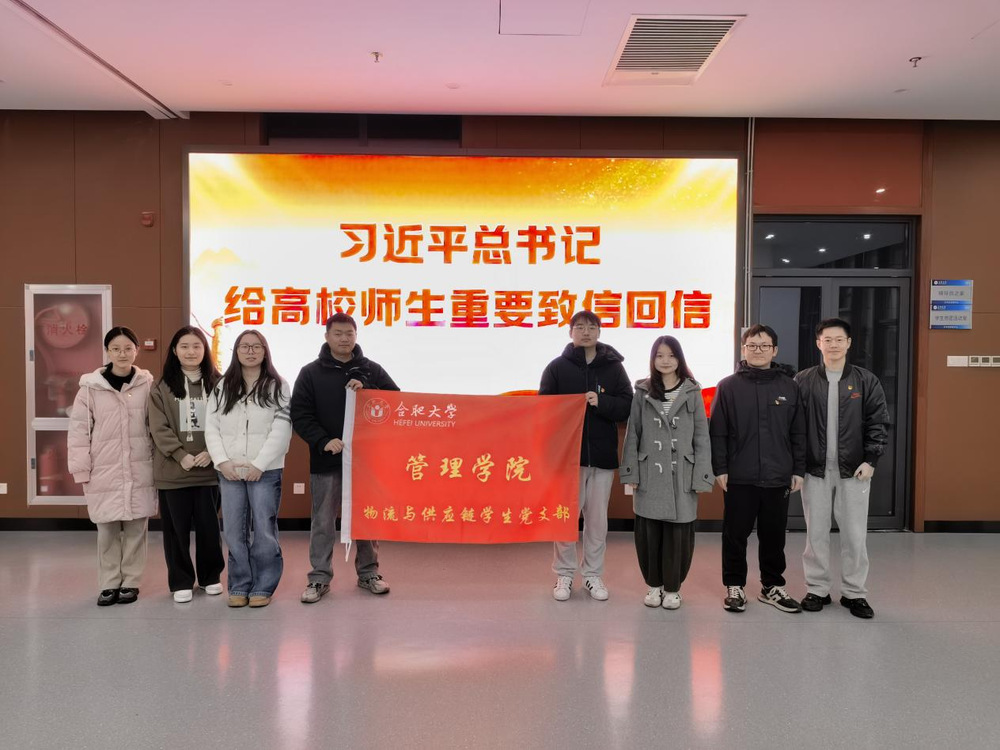 12月23日下午,管理学院物流与供应链学生党支部书记余宏强带领支部成员走进大学生活动中心,集体参观“习近平总书记给高校师生重要致信回信”主题巡展。展板图文并茂呈现总书记对高等教育和青年成长的深情牵挂,师生们在一份份珍贵复信前驻足凝视,重温立德树人、强国有我的时代强音。