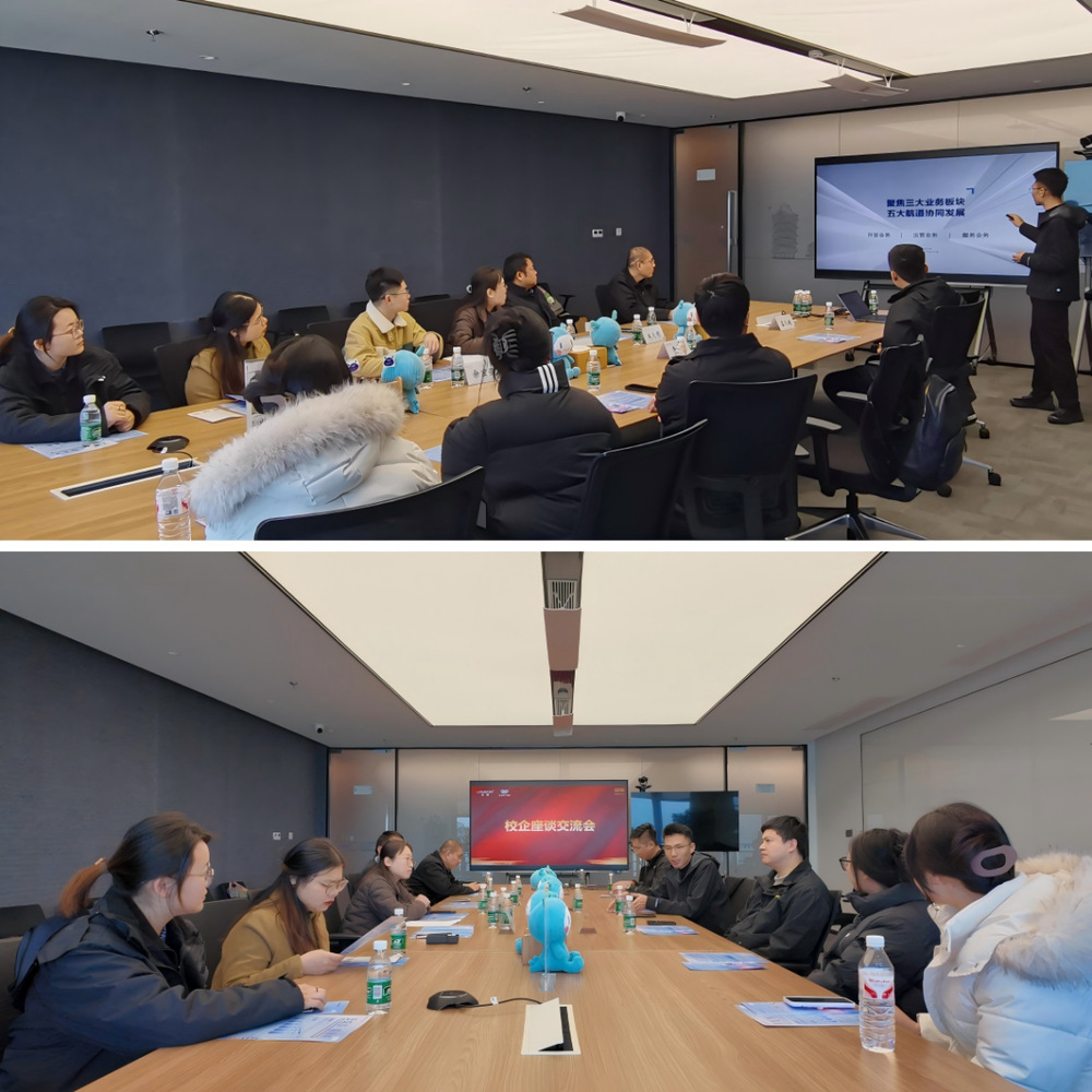 随后,校企双方前往光年中心办公基地开展座谈交流。座谈会上,李彭详细介绍了龙湖集团的发展历程、业务布局及龙湖冠寓在租赁住房领域的核心优势;孟凡超则重点阐述了龙湖冠寓在人才培养、职业发展路径及管培生体系建设等方面的具体举措,展现了企业对青年人才成长的高度重视。在交流互动环节,随行学生积极提问,围绕岗位职责、晋升机制、环境融入等内容与企业代表进行了深入沟通,现场气氛热烈。学院领导也与企业方就人才需求、校企合作模式、实践教学基地建设等方面展开了深入探讨,达成了多项共识。活动最后,双方共同签订校企合作实习就业基地协议并挂牌。