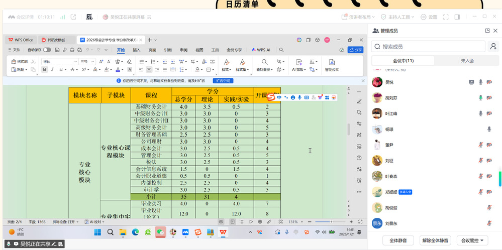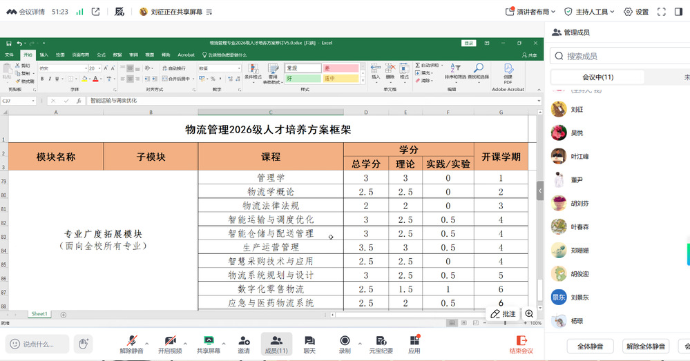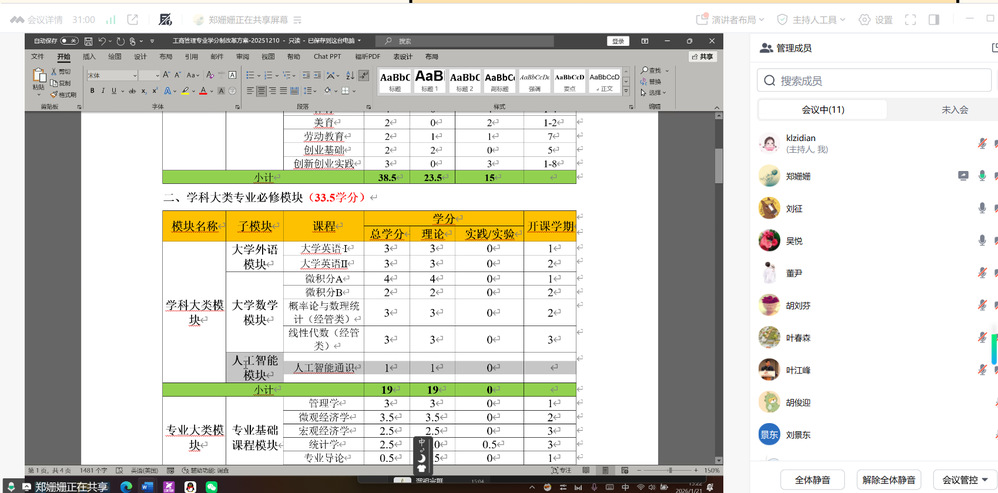 为坚持立德树人,持续深化教育教学改革,构建高水平本科人才培养体系,1月21日下午,我院就人才培养方案修订工作与安徽大学商学院进行线上调研交流,会议由副院长吴悦主持。工商管理系主任郑姗姗、中德物流教研室主任董尹、工商管理教研室主任杜宇、物流管理教研室主任刘征、会计学教研室主任杨璟、供应链管理专业主任胡俊迎、教学办主任袁宏稳参与了交流。安徽大学商学院副院长叶江峰、工商管理系主任刘景东、物流科学与工程系主任叶春森、会计系主任胡刘芬共同参与了交流。 首先,副院长吴悦向叶江峰副院长等人介绍了合肥大学人才培养方案修订指导意见文件,并请安徽大学的4位领导专家对我院相关专业的人才培养方案提出修改意见。 随后,各专业分别展示了各自人才培养方案,叶江峰副院长、刘景东主任、叶春森主任和胡刘芬主任分别提出了相关建议,交流讨论气氛热烈。 此次线上人才培养方案调研交流,加强了我院和省内高校的沟通联系,有利于完善我院人才培养方案修订工作。