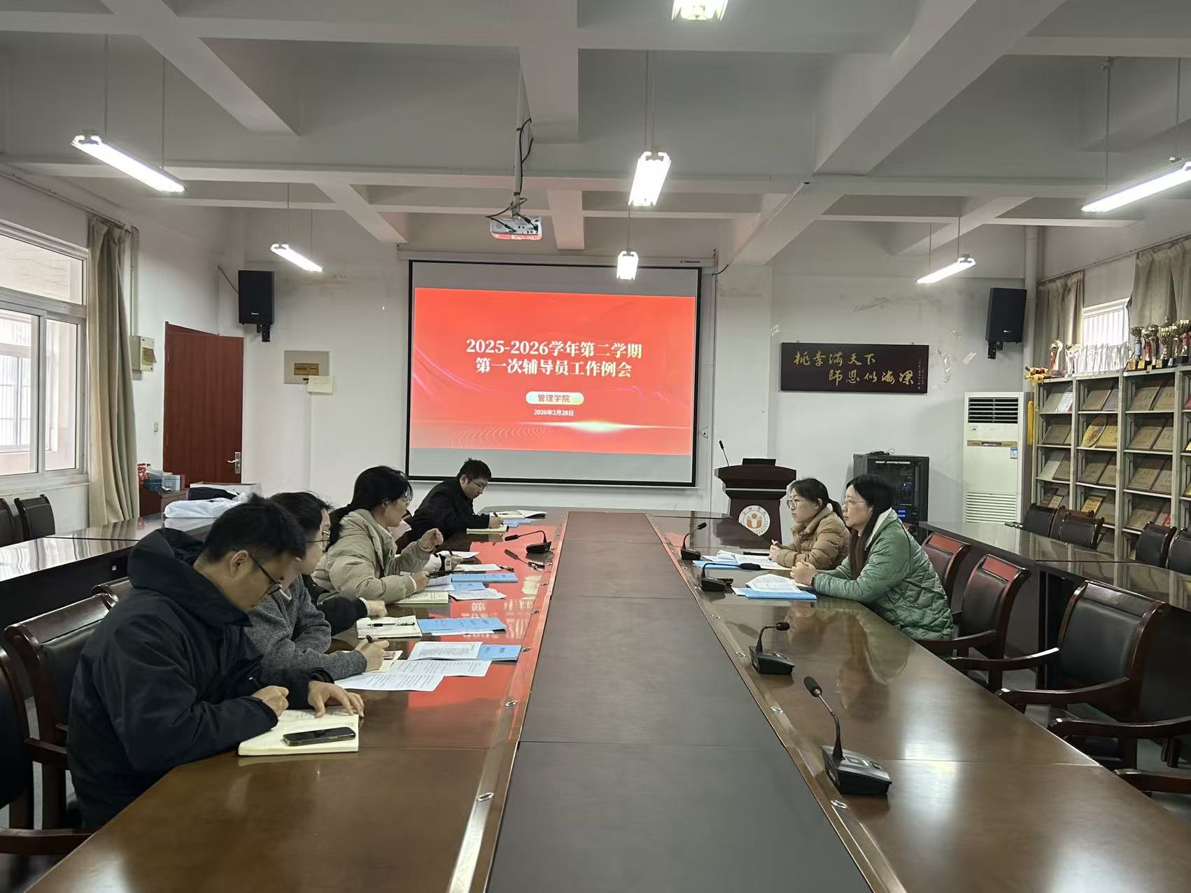 为精准谋划、统筹推进本学期学生工作,确保各项学工任务有序推进、落地见效,合肥大学管理学院于2月28日召开新学期第一次辅导员例会。学院党委书记刘金平、党委副书记徐娴出席会议,全体专兼职辅导员参加会议,会议由徐娴主持。 会议伊始,各位辅导员结合自身工作职责,围绕本学期重点工作任务,逐一汇报了工作计划和具体方案,明确了自身工作目标。 随后,徐娴传达了学期初学校第一次学工例会的核心精神与主要内容,重点强调了学生安全教育管理工作的紧迫性与重要性,对“开学第一课”、宿舍专项检查、毕业生就业等重点工作进行了详细部署,要求全体学工人员提高思想认识,切实把各项工作落到实处。 会议最后,学院党委书记刘金平作总结讲话。她要求全体学工人员以饱满热情、责任担当和育人爱心,全身心投入学生工作;务必筑牢安全稳定底线,聚焦核心重点,尤其要集中力量、多措并举抓实抓细毕业生就业工作,以实干践行育人使命、以担当守护学生成长。