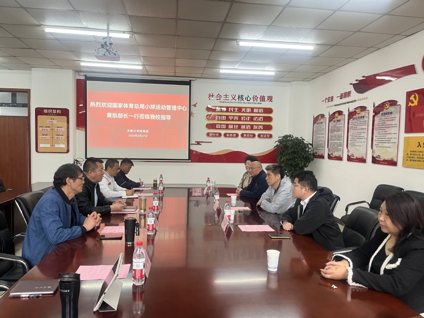 3月27日上午,国家体育总局小球管理中心黄凯部长一行5人来到合肥大学体育部开展专题调研,体育部主任许刚携全体班子成员接待并全程陪同。