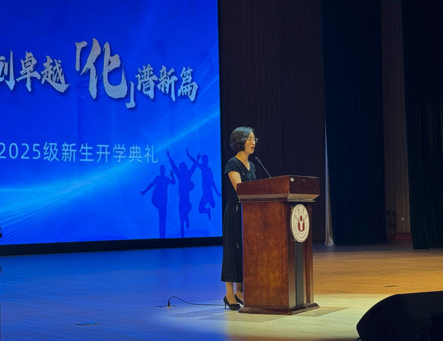 教师代表、研究生导师刘伶俐结合本科与研究生阶段的培养定位和目标,分享了自己多年的育人经验。她以生动的案例和殷切的嘱托,为新生们送上了极具针对性的成长建议,为他们规划学业道路点亮了明灯。随后,研究生代表叶语诺和本科生新生代表朱宏健先后发言。叶语诺分享了自己在学术探索中的感悟与收获,朱宏健则畅谈了入学初心与对未来的坚定追求。他们的发言字里行间都洋溢着青春的朝气与脚踏实地的奋斗决心,赢得了现场阵阵掌声。