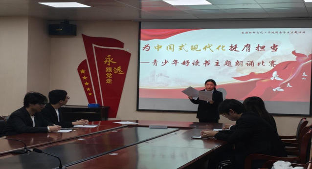 为引导青年学子在书香中厚植家国情怀,以青春之姿践行青年担当,11月14日晚,由我院学生会办公室、文体部联合学生第三党支部主办的“为中国式现代化挺膺担当——青春年少好读书”主题朗诵比赛在生化楼三楼会议室隆重举行。