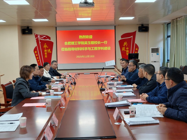 为进一步推进材料科学与工程学科博士点建设工作,提升学科建设质量与水平,2025 年 11 月 19 日下午,合肥理工学院吴玉程校长与中国科学技术大学等其他高校专家团队莅临我校,在能源材料与化工学院 309 会议室开展学科建设指导交流。中国科学技术大学宣守虎、朱纪欣、余彬、邢伟义,安徽大学胡海波,合肥师范学院訾振发几位专家出席指导。