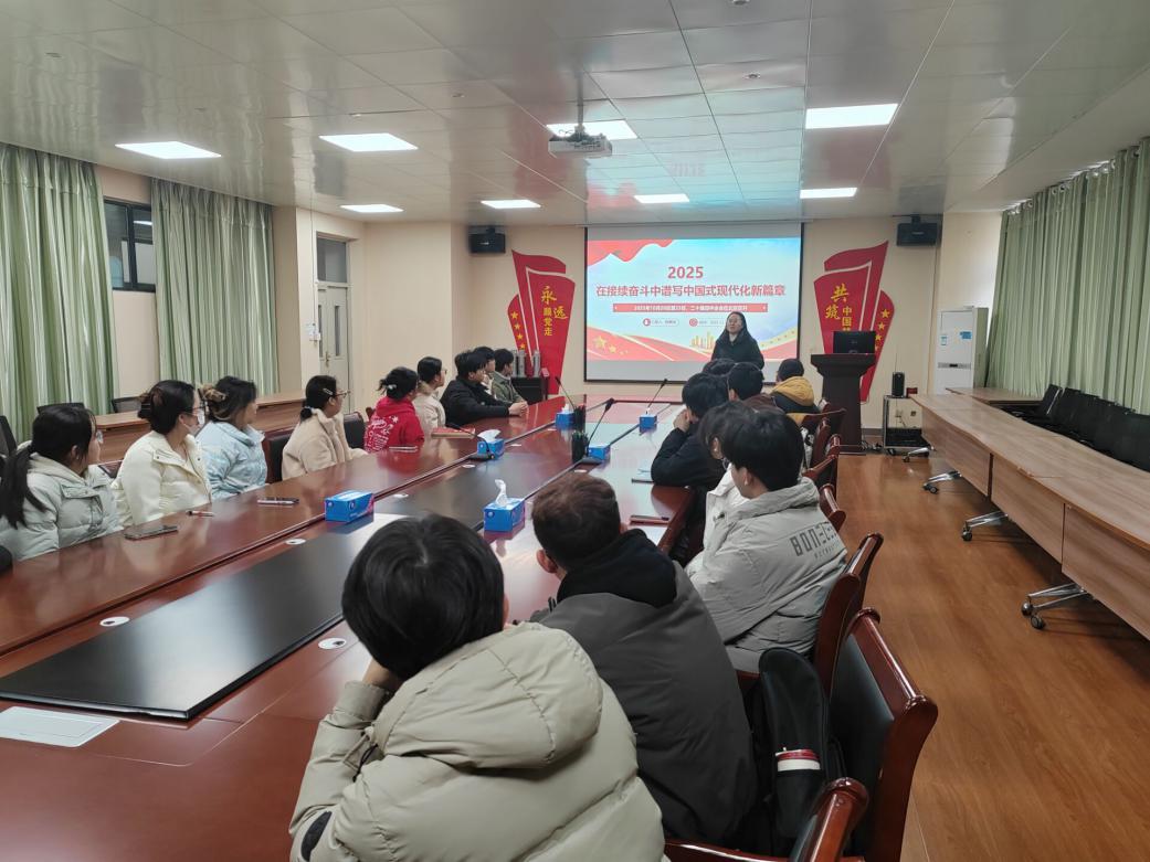 为深入学习贯彻习近平新时代中国特色社会主义思想与二十届四中全会精神,紧密结合合肥大学第一次党代会精神及学校发展规划,引导青年党员将个人奋斗融入校地发展与国家建设大局,2025年12月25日,学生第一党支部书记、校二十届四中全会宣讲团成员陈静怡,以《在接续奋斗中谱写中国式现代化新篇章》为题,为学生第一、三党支部全体党员讲授专题党课。