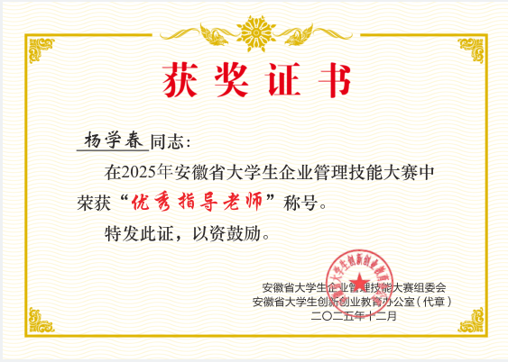 中心教师指导学生在2025年安徽省大学生企业管理技能大赛中荣获供应链决策赛项一等奖