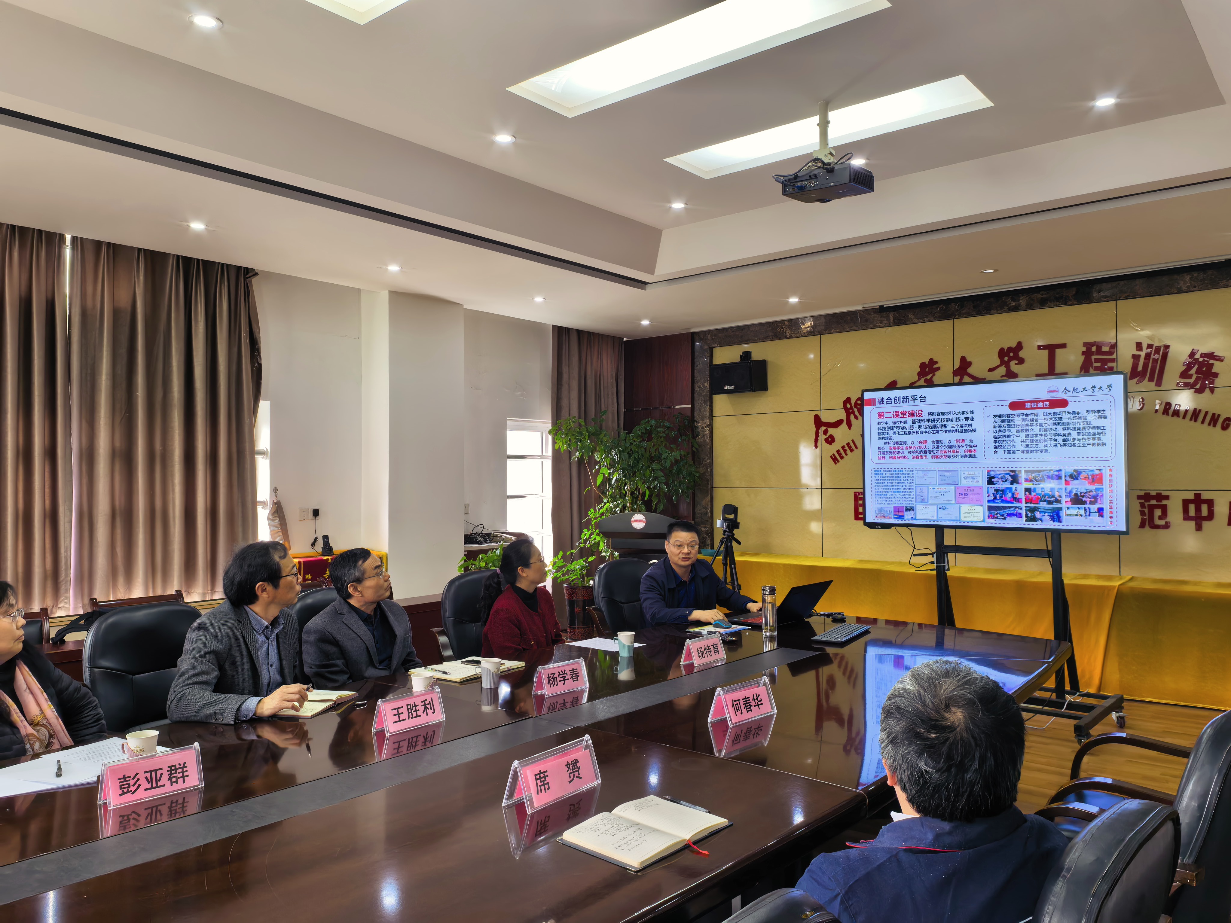2026年4月1日下午,合肥大学基础实验与实训中心主任杨学春、副主任王胜利、杨特育率队赴合肥工业大学工程素质教育中心开展调研学习活动。 调研期间,双方进行了座谈。合肥工业大学工程素质教育中心副主任何春华详细介绍了中心的发展历程、取得的成效及经验做法。杨学春主任则围绕合肥大学基础实验与实训中心的基本情况与发展设想作了交流发言。随后,双方就工程训练课程设置、学时安排、教学内容及师资队伍建设等方面进行了深入探讨和交流。 座谈会后,调研团队实地参观了金工实训车间、电工电子实训室等教学场所,并与相关负责人就设备配置、课程安排、师资配备等内容进行现场交流。 此次调研学习,为合肥大学基础实验与实训中心进一步深化实践教学改革提供了有益借鉴和思路启发。