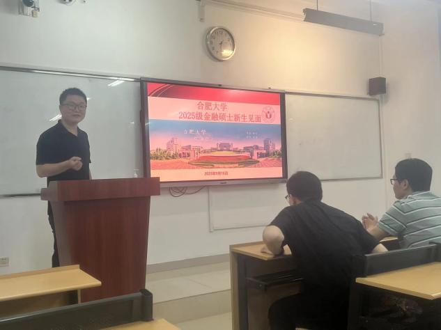 会议由范宇翔老师主持,范老师首先对2025级新生的到来表示了热烈欢迎,并对新生就合肥大学进行了详细的介绍。从学科建设、师资力量和科研平台等方面介绍了合肥大学及经济学院的发展概况,勉励新生深耕专业领域,注重理论与实践结合,恪守学术道德,全面提升科研素养。为增近师生了解,参会导师一一进行了自我介绍,给新生们留下了深刻而又温馨第一印象。