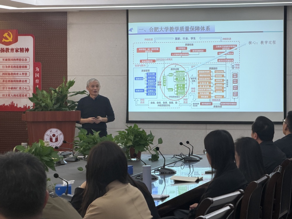讲座伊始,储忠处长以合肥大学教学质量保障体系为切入点,系统阐释了“目标导向、过程监控、持续改进”的闭环管理机制。他结合学校实际案例,强调教学质量保障体系需以教学过程为核心,质量标准、管理、监控、改进、文化为重点,指出“质量保障需融入日常教学全流程,而非阶段性检查”。