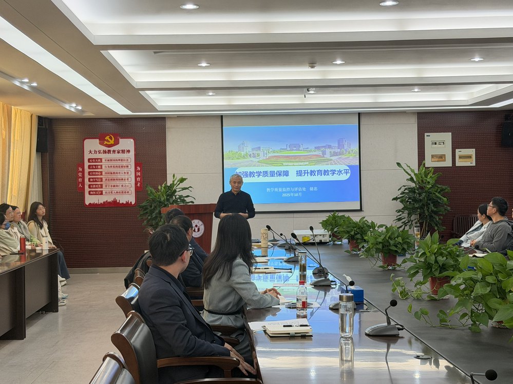 为深化教育教学改革,强化教学质量保障体系,10月28日下午,合肥大学教学质量监控与评估处处长储忠教授受邀莅临经济学院,作题为《加强教学质量保障,提升教育教学水平》的专题培训。本次培训围绕合肥大学教学质量保障体系、教师教学工作规程、教学事故认定与处理机制及教学现存问题四大核心板块展开。经济学院全体教师参与学习,共谋教学水平提升新路径。