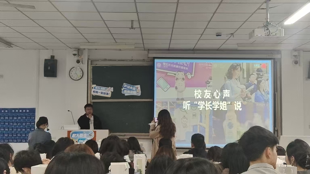 经济学院21级经济工程专业校友,目前就职于安徽新希望白帝乳业有限公司的丁超,作为学长和校友代表,讲述了自己在公司的成长经历,为毕业生提供了真实可靠的就业参考,增强了求职信心。丁超还鼓励各位同学积极参加面试,把握校园招聘的机会。