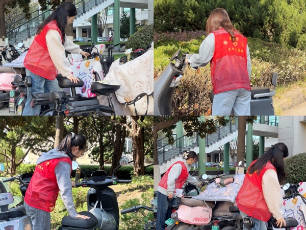 学习结束后,全体党员前往校园电动车停放区,开展“文明校园、规范停车”主题党日活动。大家分工协作,规范整理车辆,并向同学们宣传文明出行理念。忙碌的身影穿梭其间,成为校园里一道温暖的风景线。