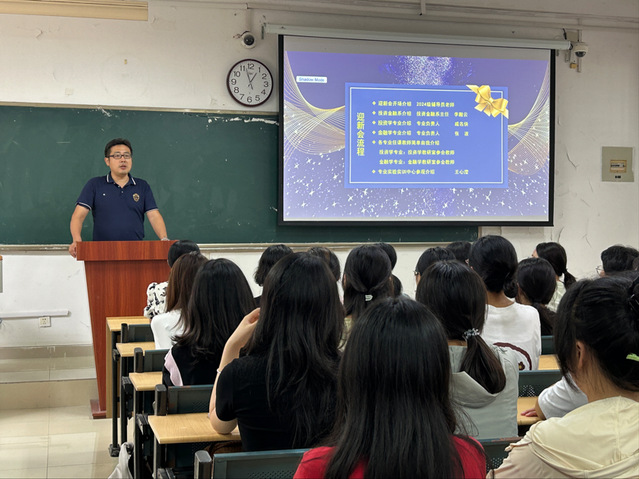 会议开始,由2024级新生辅导员夏丹青副书记进行迎新会开场介绍,同时对投资金融系的新一届学子们的到来表示热烈的欢迎与真挚的祝福。