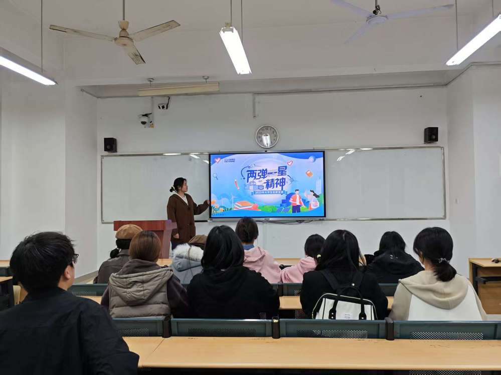活动现场,宣讲员围绕《“两弹一星”精神》专题课件,讲述了王淦昌“隐姓埋名十七载,三次错过诺奖只为许国”、郭永怀“海外研学十六载,冲破阻挠归国筑核盾”等感人事迹。从1958年“搞一点原子弹”的战略决策,到221基地“头顶烈日、饥餐砂砾”的艰苦创业,再到1964年10月16日“东方巨响”的历史瞬间,一幕幕故事在青年心中激荡起深沉的家国情怀。