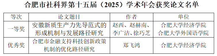 经济学院教师在合肥市社科界第十五届学术年会中斩获佳绩