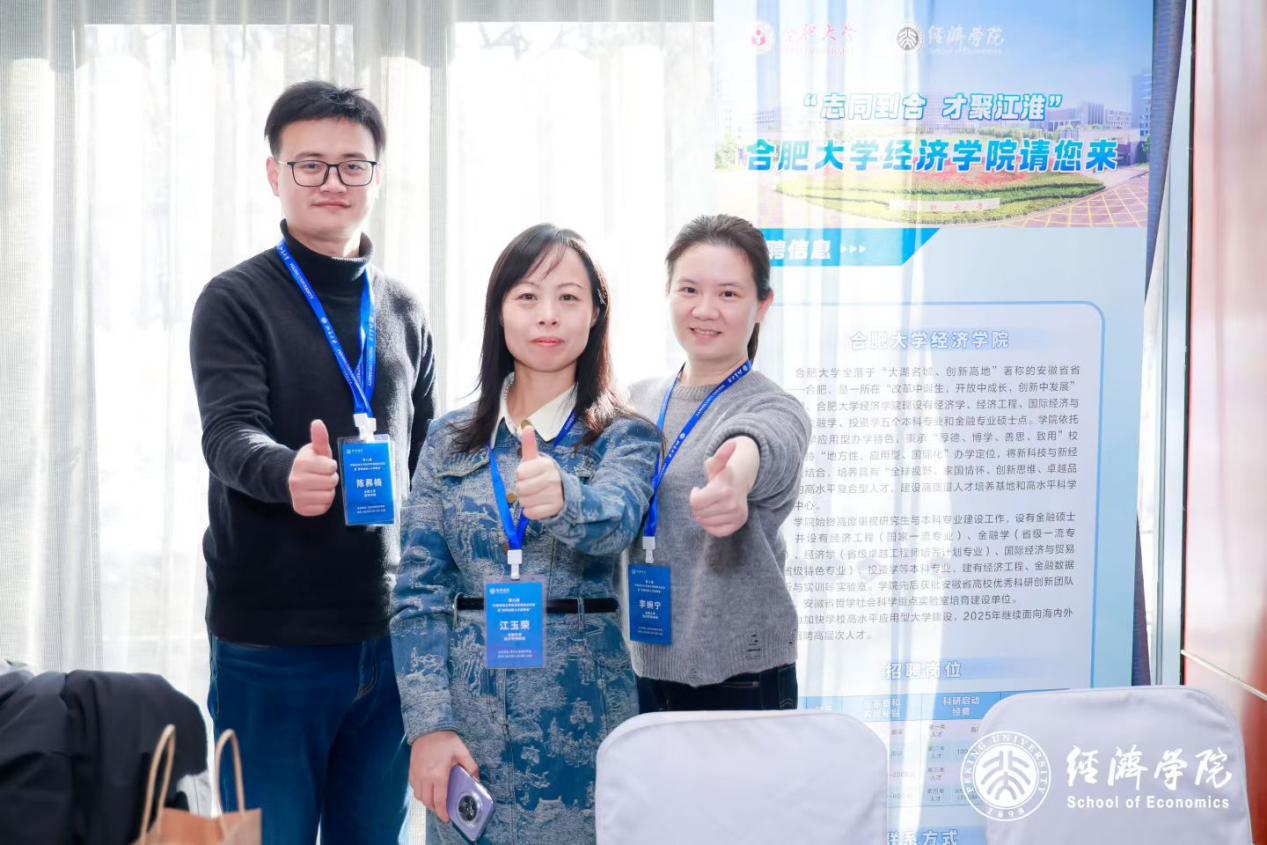 为把握AI时代经济学教育与研究发展新机遇,加强学科交流与人才引育对接,2025年12月13日,合肥大学经济学院院长江玉荣、教师陈奡楠及李婉宁一行受邀参加北京大学主办的第八届“中国百所大学经济学院院长论坛”暨“百所经院人才招聘会”。