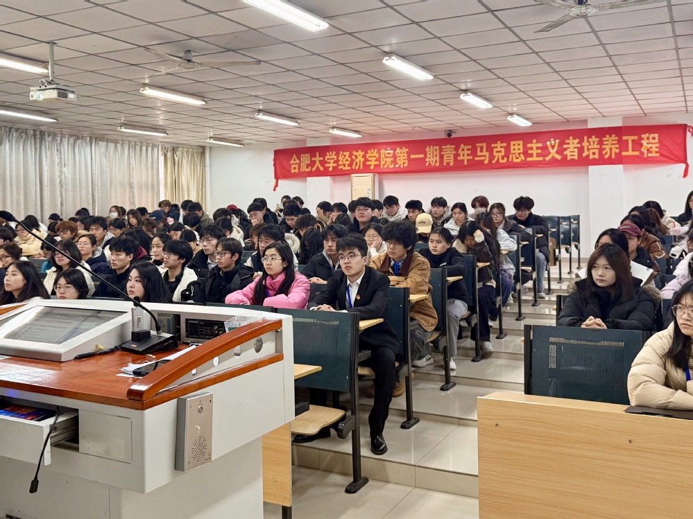 为深入学习宣传贯彻党的二十届四中全会精神,切实加强青年学子政治思想引领,12月12日中午,经济学院党委书记储昭辉给学院第一期“青马工程”培训班学员上课,学院团委负责人陈思超和培训班全体学员参加学习。