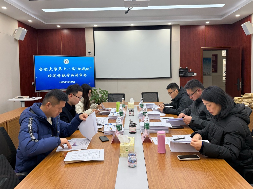2025年12月24日下午,经济学院在学校一期4栋213会议室举行合肥大学第十一届“挑战杯”大学生创业计划竞赛经济学院作品评审会。郑飞鸿、李殿云、王林川、周净、戚名侠、张波等六位教师组成评审专家组,对参赛作品进行集中评审。