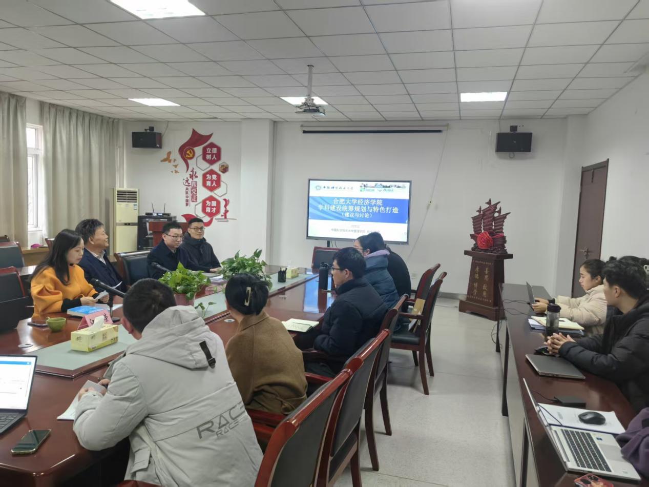 2025年12月24日15:00,中国科学技术大学刘志迎教授应邀做客合肥大学经济学院,以“学科建设与高端智库特色凝练打造”为主题开讲2025年南艳湖大讲堂。合肥大学经济学院教师参会,讲座由合肥大学经济学院院长江玉荣主持。 刘志迎教授立足学科建设与专业建设“双轮驱动”的内在关联,围绕人才培养质量、师资队伍建设、科学研究水平、社会服务效能等核心维度,系统阐述了学科建设的发展路径。讲座中,刘教授着重强调,经济学院需凝练彰显自身特质的学科建设思路,并就如何提升学科建设质量给出具体可行的建议,引发与会教师的强烈共鸣。讲座结束后,刘教授还与经济学院参会教师展开深入的互动交流。