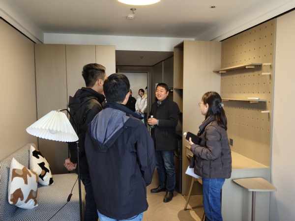 1月14日,经济学院和管理学院共同赴合肥冠寓商业运营管理有限公司开展访企拓岗专项行动。经济学院党委副书记朱天明,辅导员于昊、陈思超,经济学院2026届毕业生肖蕾、石玉静参加此次活动。 活动伊始,在龙湖资产管理合肥高新天街店店长贺书一、龙湖资产管理合宁地区一线人力徐小玉的引导下,经济学院师生一行首先前往龙湖冠寓高新天街店进行实地参观,贺书一详细介绍了冠寓产品的特色,包括超强收纳空间、配套厨房、豪华健身房等配套设施。通过实地参观,师生们直观了解了不同类型的公寓及功能区域和“生态化联动一体”的商业模式,更好地理解了现代住房租赁业务的实际运营方式。