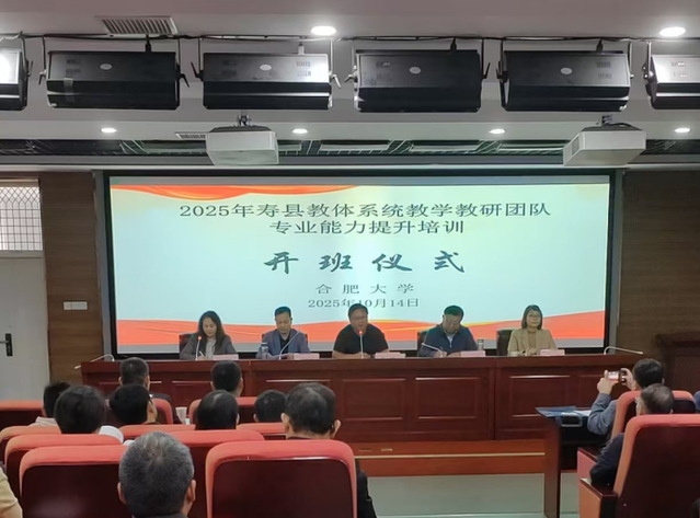 为深入贯彻新时代教育发展要求,进一步提升寿县教研队伍的专业素养与履职能力,推动教学研究与教育政策的有效衔接,由合肥大学继续教育学院承办的“2025年寿县教体系统教学教研团队专业能力提升培训”于10月14日上午在合肥大学一期6栋学术报告厅顺利开班。本次培训为期五天,来自寿县的55名教体系统相关人员参加本次培训。