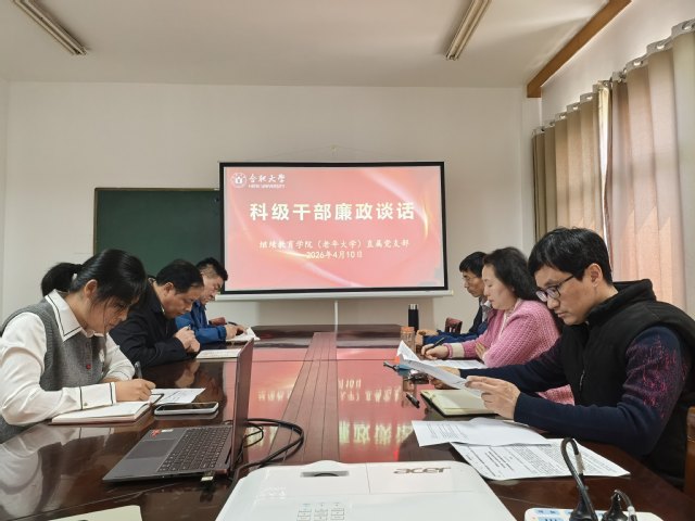 为深化全面从严治党,持续强化干部廉洁自律教育,筑牢拒腐防变思想防线,4月10日上午,继续教育学院(老年大学)直属党支部在210会议室召开科级干部廉政谈话。会议由学院副院长、直属党支部纪检委员杨承刚主持,直属党支部书记、院长高艳及学院全体科级干部参加会议。
