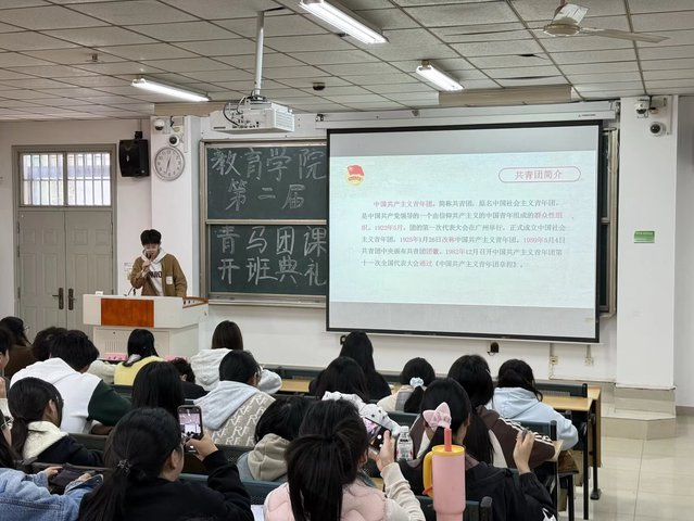 典礼由组织部部长鲁琪静主持。伊始,全体成员起立奏唱共青团团歌,在激昂旋律中感悟团员使命。随后,主持人介绍团课召开背景、学习规划及纪律要求。张弦乐老师结合党的号召发言,强调青马团课重要意义,嘱托学员牢记团员身份,将理论成果转化为成长动力。新生代表张韵涵上台展现青年朝气,张慧对典礼作系统总结并展望未来。