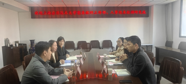 为共谋人事人才工作高质量发展,11月19日上午,上海应用技术大学党委教师工作部部长、人事处处长朱柳娟、副处长俞俊、饶婷一行来校调研交流,合肥大学党委教师工作部部长、人事处处长杜娟主持会议,副处长段惠敏、李新路参加座谈交流。
