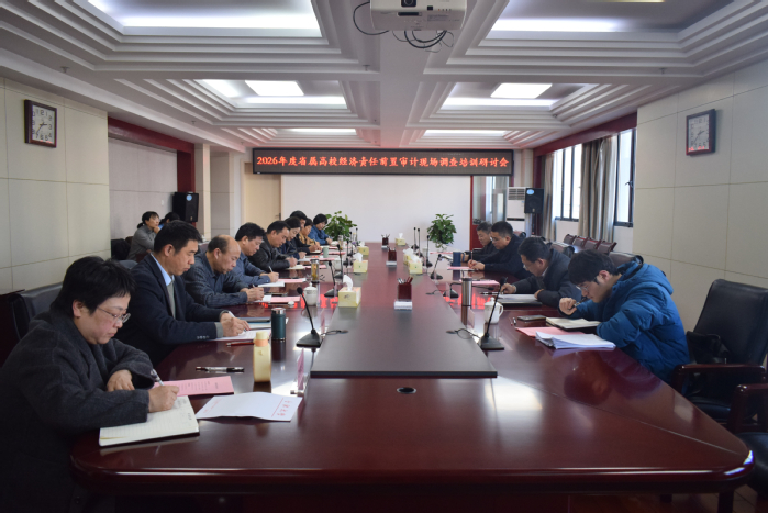 1月13日,由教育厅监审处主办,我校承办的“2026年度省属高校经济责任前置审计现场调查培训研讨会”在行政楼九楼东会议室召开。省教育厅监审处副处长、二级调研员曹玉建主持,校党委副书记、校长任永出席会议并讲话。
