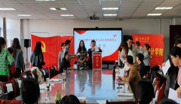 大会严格按照相关规定,通过了代表候选人名单、代表选举办法和监票人名单,并宣布了计票人名单。选举环节由总监票人管梅同志主持,全体党员同志充分行使民主权利,以无记名投票方式差额选举产生数学与统计学院党委出席学校第一次党代会的4名代表。投票过程中,监票人、计票人率先投票,随后各支部党员按顺序在指定票箱投票,整个过程严肃规范有序,现场气氛庄重热烈,每位党员都投下了庄严一票。经现场唱票统计,王磊、田梦玲(学生党员)、闫晓辉、章云冉四位同志当选为出席合肥大学第一次党员代表大会的党代表,选举结果将按规定程序报学校党委审批。最后,大会在激昂的《国际歌》声中圆满闭幕。