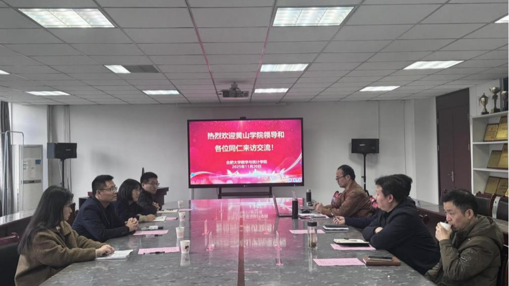 11月20日下午,黄山学院数学与统计学院院长胡建伟、副院长梁文娟等一行四人来我院开展调研交流。座谈会由我院院长余海峰主持,党委副书记、副院长闫晓辉,副院长李宁及相关专业负责人出席座谈。