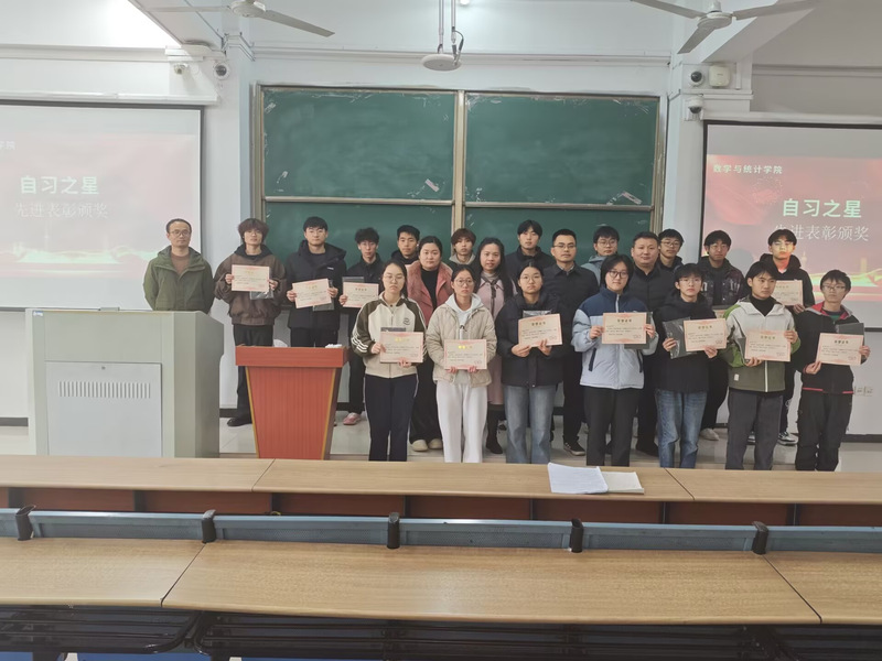为进一步浓厚校园学习氛围,弘扬自律自强的优良学风,表彰在晚自习期间表现突出的优秀学子,数学与统计学院于12月4日中午在36栋3JT教室隆重举行了2025-2026年度第一学期“晚自习之星”颁奖仪式。学院党委书记王磊、副院长闫晓辉、副院长李宁、辅导员盛斐与全体大一新生齐聚一堂,共同见证这一荣耀时刻。仪式由学院党委副书记章云冉主持。