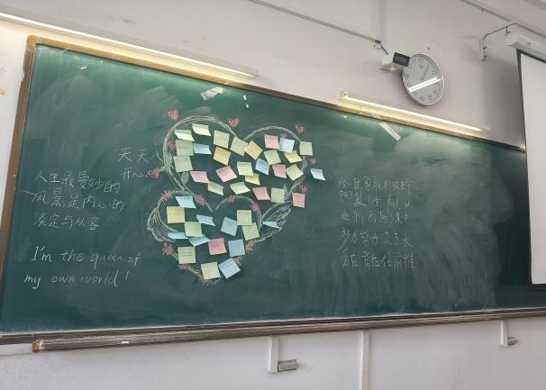 11月28日中午,打卡活动总结会暨颁奖仪式在35-303教室举行。仪式开始,邓欣辰老师与同学们一起回顾了15天以来打卡记录中的温暖片段,并邀请大家在便笺上写下心灵寄语,贴在现场黑板上,共同绘制成一幅“心声之墙”。