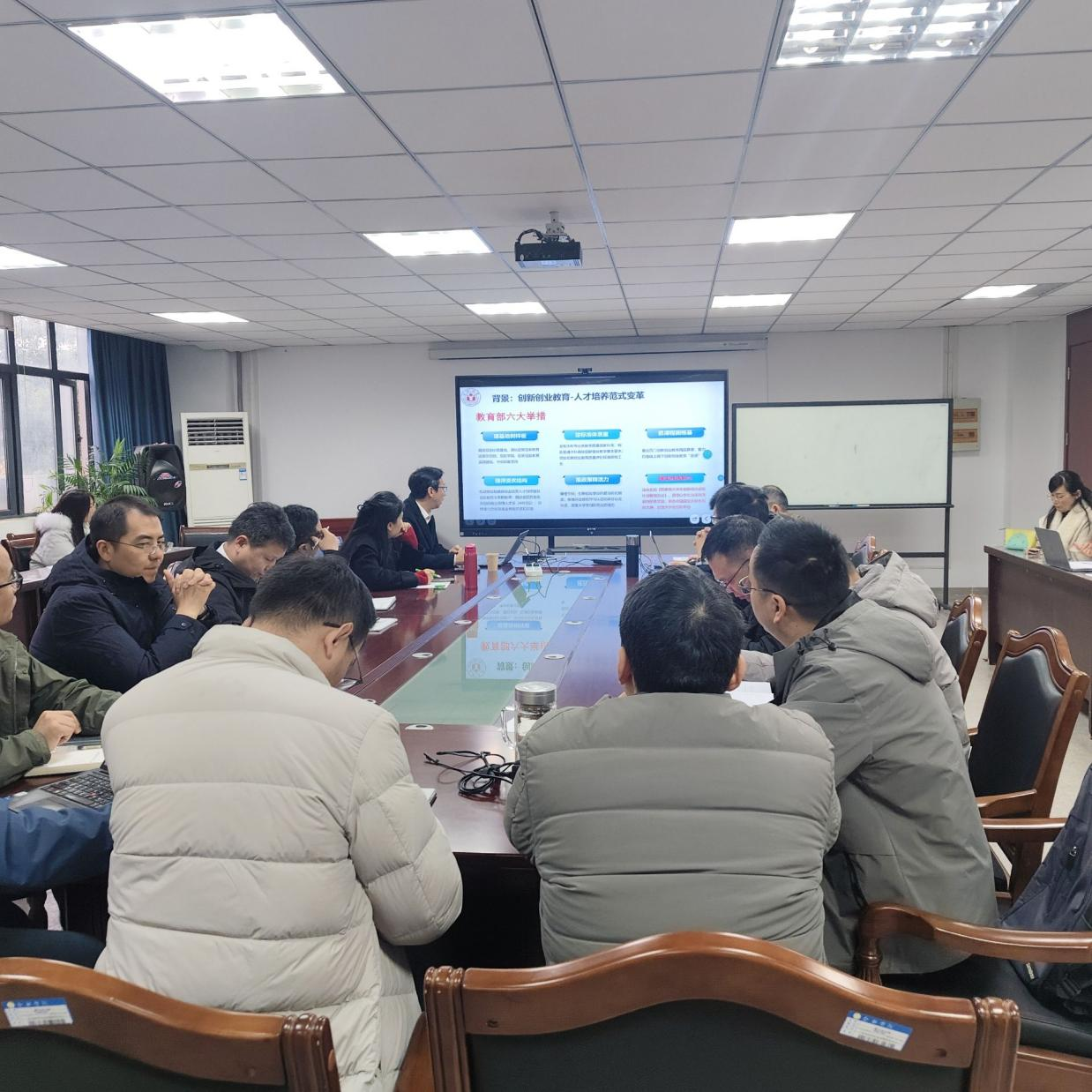 成功举办。本次会议邀请学校地方服务合作处副处长、创新创业学院副院长孙虹担任主讲人,院长余海峰主持会议,学院全体老师和部分学生代表参加。