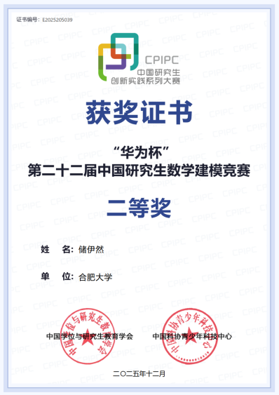近日,2025年中国研究生数学建模竞赛成绩正式揭晓。由合肥大学研究生张云桃、储伊然、李翼飞组成的AA团队凭借出色的模型构建、算法设计与论文撰写能力,在全国631个研究生培养单位的24371支队伍激烈角逐中脱颖而出,荣获国家二等奖。这是本校在本项顶级赛事中取得的历史最佳成绩,标志着学校在研究生创新实践能力培养与高水平学科竞赛领域取得了重要突破。