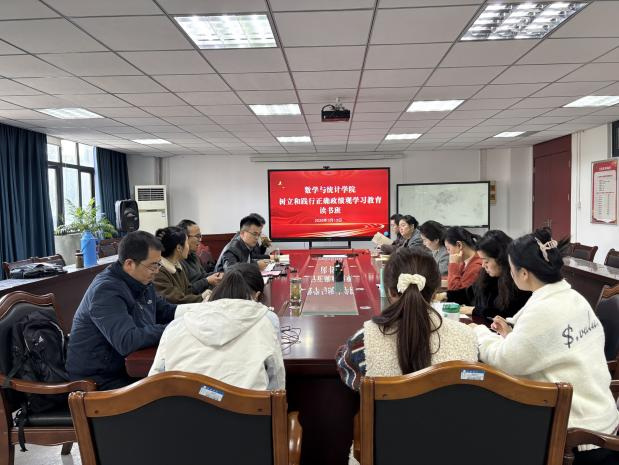3月13日上午,数学与统计学院党委在37栋305会议室召开2026年第三次党委理论学习中心组学习会暨树立和践行正确政绩观学习教育读书班第一次集中学习。学院党委书记王磊主持会议,全体中心组成员、党支部书记、科级干部、学生党员代表分阶段参加学习。