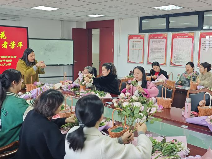 2026年3月10日下午,数学与统计学院分工会在37栋305开展了主题为“指尖生花,师者芳华”的插花艺术活动,以此庆祝国际妇女节,学院三十多名女教师积极参加了活动。