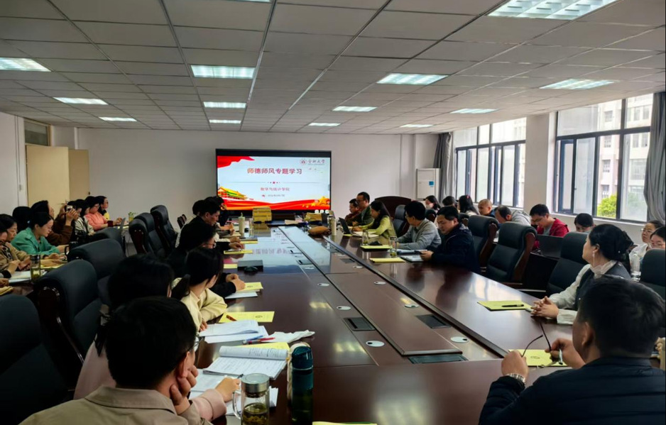为全面落实新时代高校师德师风建设要求,持续提升教师队伍思想政治素养和职业道德水平,2026年4月7日下午,数学与统计学院在39栋305会议室召开师德师风专题学习会。学院党委书记王磊主持会议,学院领导班子成员及全体教师参会。