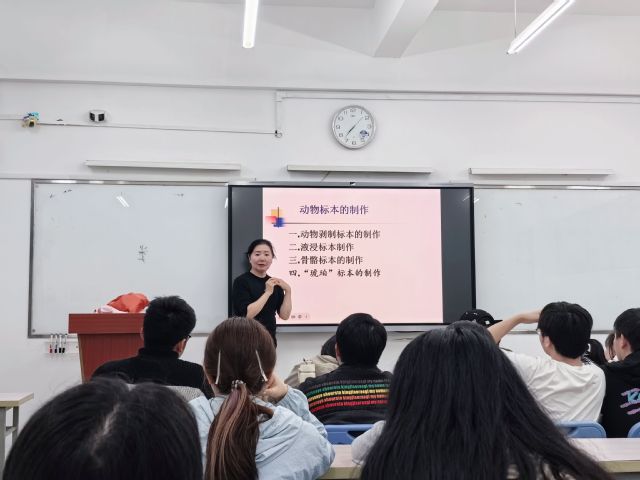 为提升学生专业实践能力,传承学科匠心,助力学子备战安徽省大学生生物标本制作大赛,10月16日下午19:00,生命健康与环境工程学院特邀校关工委“五老”报告团专家李蕤教授在生化楼206教室,为参赛学生开展标本大赛专项指导。