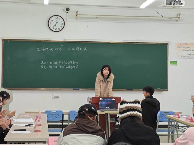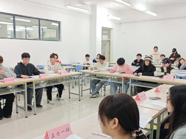 为锻炼学生逻辑思维、提升语言表达能力,丰富校园文化生活,2025年10月18日晚上18点30,合肥大学生命健康与环境工程学院举办了一场精彩绝伦的校园辩论赛。本次辩论赛以“如今的我们是该享受忙还是闲”和“成功路上好伙伴重要还是好对手重要”为辩题,正反双方围绕各自观点展开了深度交锋。