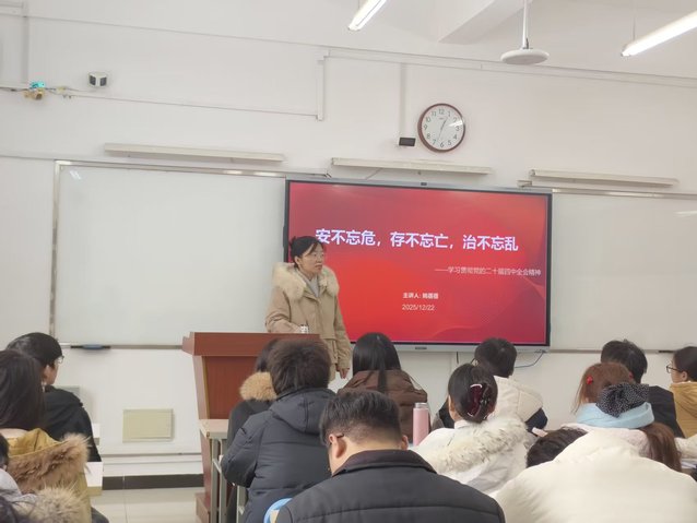 为引导青年党员深刻领悟党的二十届四中全会精神内涵,找准个人成长与国家发展的结合点,12月22日中午,生命健康与环境工程学院党委副书记姚蓓蓓做题为“安不忘危,存不忘亡,治不忘乱——学习贯彻党的二十届四中全会精神”专题党课。院学生第二党支部和研究生第二党支部全体党员参加。