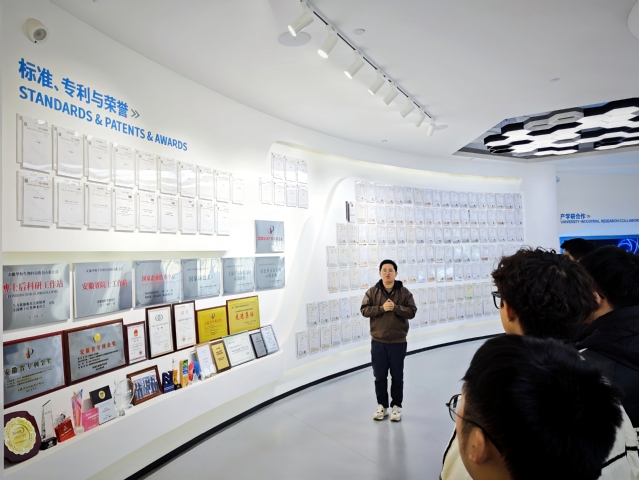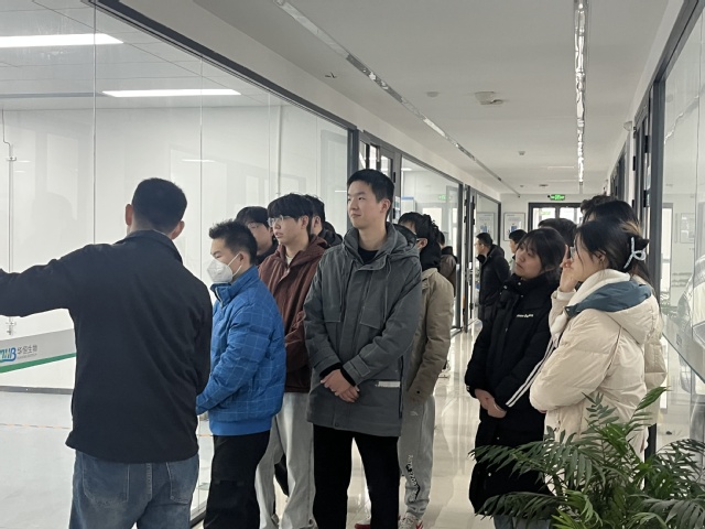 首先,华恒生物招聘总监谢涛对合肥大学生环学院师生的到来表示热烈欢迎。随后,谢涛带领同学们参观了企业展厅,介绍了华恒生物的发展历程、核心产品与技术成果。从关键生物制品的研发,到产业化应用的突破,再到全球市场的布局,同学们沿着企业的“奋斗足迹”,深入了解华恒生物以合成生物技术为引擎,在L-丙氨酸、L-缬氨酸等产品领域取得全球领先地位,真切感受到华恒生物从创立到上市的创新之路与实干精神。为让同学们进一步理解生物技术的转化过程,企业开放了研发实验室供师生参观。从上游的工程菌株改造,到规模化的发酵工艺优化,同学们近距离观察了生物制造的重要环节。研发负责人详细讲解了菌种筛选、发酵优化与产物分离等关键步骤,将课本中的理论知识与实际生产应用紧密结合。同学们亲身感受到了生物工程专业如何从实验室走向产业化,深刻体会到“匠心”与“科技”在研发中的融合应用。