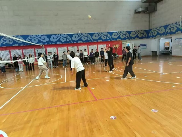 10月25日中午12:00,生材合院与教育学院的对决激情上演。比赛一开始,赛场瞬间被点燃。双方队员目光如炬,展现出势不可挡的锐气。他们移动灵活,在网前建立了坚实的防线。场上队员不时拉手相互鼓励,传递默契,他们的身影在灯光下划出矫健的弧线,每一个精彩回合都让看台沸腾,欢呼声此起彼伏。