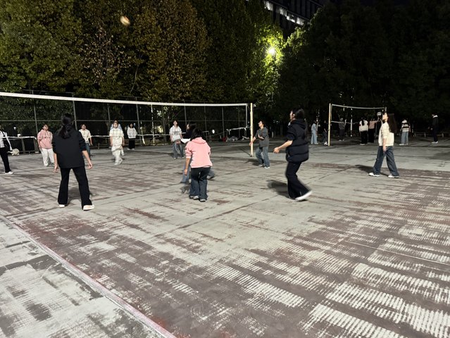 赛初,空气中弥漫着大战将至的紧张气息,双方便迅速进入状态,毫无保留地展开对攻,排球在空中划出弧线,防守队员脚步交错,膝盖微曲,身体重心瞬间下沉,双臂并拢迎向来球,手腕在接触瞬间微微下压,将那股刚猛的力量悄然化解。攻守转换间,动作行云流水,起跳,防守,再起跳,节奏越来越快,速度越来越急,场边的呐喊声渐渐模糊,只剩下球鞋与地板的摩擦声和排球与手臂碰撞发出的清脆声响。比赛很快进入白热化阶段,生环学院的运动员们展现了精湛的球技与顽强的意志。发球势大力沉,一传稳健精准,二传调度有方,网前拦防密不透风,后排救险奋不顾身。主攻手于四号位发起的大力扣杀与巧妙轻吊相结合,突破对方的防守阵线。每一次成功的得分均引发了现场观众的热烈欢呼。